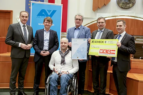Schicksalsschläge wie das von Herrn Kropf reißen Betroffene plötzlich aus dem Leben. Von einem Moment auf den anderen ist alles anders: Man ist auf Hilfe angewiesen, die Wohnung entspricht nicht mehr den Bedürfnissen und auch der Beruf kann möglicherweise nicht mehr ausgeübt werden. „Als AUVA unterstützen wir unsere Versicherten in Lebenssituationen, in denen sie einen absoluten Kontrollverlust erleben und helfen mit allen geeigneten Mitteln, dass sie wieder in den Alltag zurückfinden”, sagt Franz Nechansky, Obmann der Regionalstelle Eisenstadt der Wirtschaftskammer Burgenland und Mitglied im Ausschuss der AUVA-Landesstelle für Wien, Niederösterreich und das Burgenland. Für die Wirtschaftskammer überreichte Nechansky dem Preisträger eine Warengutschein im Wert von EUR 1.000,--.