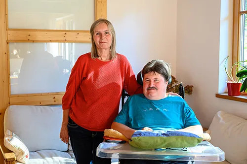 Franz Kößl war zum Zeitpunkt seines Unfalles als Ausbildungsleiter beim Österreichischen Roten Kreuz tätig und erkundete gerade einen neuen Übungsplatz. Auf dem Rückweg zu seiner Dienststelle stürzte er schwer und brach sich die oberen Halswirbel. Der erfahrene Notfallsanitäter wusste sofort, was mit ihm passiert war. In den folgenden 90 Minuten, bis er gefunden wurde, konzentrierte er sich darauf, zu überleben: „Die Lähmung hatte meine Atmung geschwächt. Dank meiner beruflichen Erfahrung bin ich nicht in Panik verfallen, sondern habe mich nur darauf fokussiert, genug Luft zu bekommen“, schildert Kößl, der nach dem Unfall bei vollem Bewusstsein war. Mit dem Hubschrauber wurde er ins AUVA-Unfallkrankenhaus Linz gebracht und sofort notoperiert. Als er am nächsten Tag aufwachte konnte er sich nicht bewegen, nicht sprechen, nicht trinken oder essen und musste beatmet werden. Am Anfang war die Verzweiflung groß: „Es hat ein bisschen gedauert, bis ich alles realisiert habe. Mit der Unterstützung meiner Familie und Freunde ist es mir aber bald gelungen, wieder nach vorne zu schauen“, sagt Kößl.