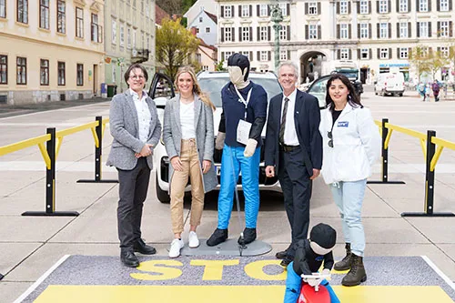 Ab dem 6. Juli müssen viele Fahrerassistenzsysteme zur Serienausstattung von neu typisierten Fahrzeugen gehören. Ergebnisse aus KFV-Erhebungen in der Steiermark zeigen allerdings, dass viele Lenkende unzureichend über deren Funktionsweise und Möglichkeiten Bescheid wissen. KFV und AUVA starten daher eine gemeinsame Informationstour und zeigen mittels eindrucksvoller Bremstests und einem Training-Car mit VR Fahrsimulator der Bevölkerung, wie groß das Unfallreduktionspotenzial von Assistenzsystemen ist.