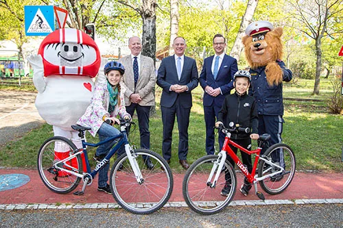 Bereits in der Kindheit wird der Grundstein für das spätere Mobilitätsverhalten gelegt. Umso wichtiger ist es, schon früh mit der aktiven Förderung der Mobilitätskompetenz zu beginnen. Das sogenannte „Elterntaxi“ - also die Autofahrt von der Haustüre bis zum Schultor - sollte die Ausnahme sein, aktive Fortbewegung die täglich gelebte Praxis. Ist der Weg zu weit, um zu Fuß oder per Scooter zurückgelegt zu werden, ist das Fahrrad eine naheliegende Wahl. Die freiwillige Radfahrprüfung stellt dabei einen wesentlichen Meilenstein zur Erweiterung des Aktionsradius junger Verkehrsteilnehmender dar. Sie berechtigt Kinder bereits ab der 4. Schulstufe ohne Begleitung eines Erwachsenen auf öffentlichen Straßen Rad zu fahren. „Die freiwillige Radfahrprüfung ist der erste Führerschein, den Kinder im Laufe ihres Lebens machen. Für junge Radfahrerinnen und Radfahrer ist es ein großer Schritt in Richtung Selbständigkeit. Auf diesem Weg werden die Schulkinder von rund eintausend speziell geschulten Polizistinnen und Polizisten unterstützt. Diese Beamten begleiten die Verkehrserziehung an den Schulen mit viel persönlichem Engagement“, so Bundesminister für Inneres Mag. Gerhard Karner über die Bedeutung dieser besonderen Phase der Verkehrserziehung.